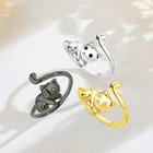 Fashion Chunky Gothic Jewelry 925 Sterling Silver Open Adjustable Size Moonstone Snakes Shaped Rings for Women